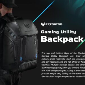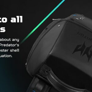 Acer PBG591 Predator Utility Gaming Backpack, Water Resistant and Tear Proof Travel Backpack Fits and Protects Up to 17.3″ Predator Gaming Laptop, Black with Teal Accents