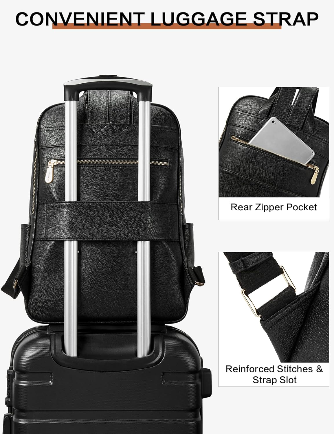 BOSTANTEN Genuine Leather 15.6 inch Laptop Backpack Purse for Women College Casual Backpack Travel Bag