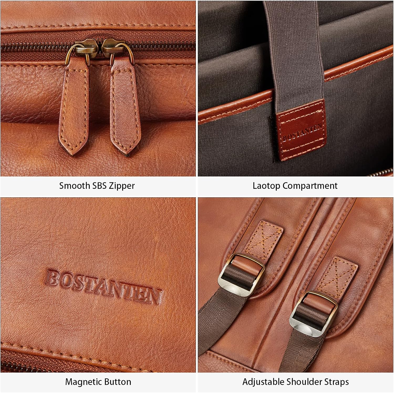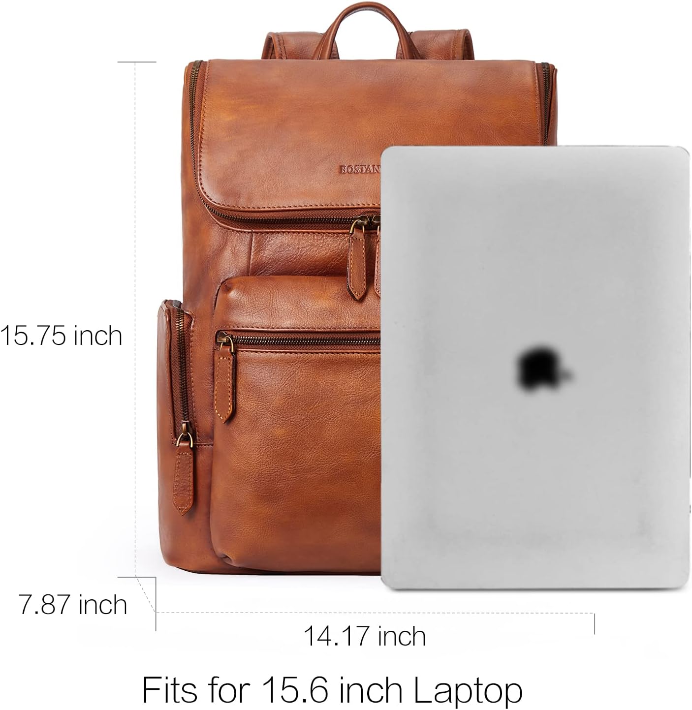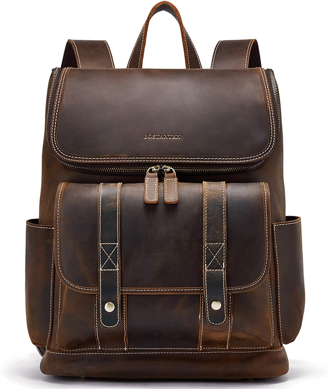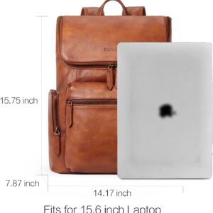 BOSTANTEN Leather Backpack for Men 15.6 inch Laptop Backpack Vintage Travel Office Bag Large Capacity Shoulder Bag Redbrown
