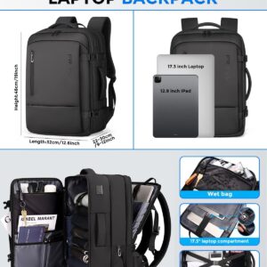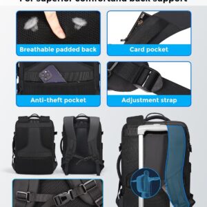 Fenree.geer Travel Backpack for Men, Flight Approved Carry On Luggage Backpack with USB Port, Water Resistant Expandable Computer Daypack, 17.3 Inch Black Business Laptop Backpack for College\/Work