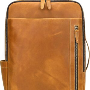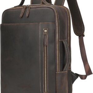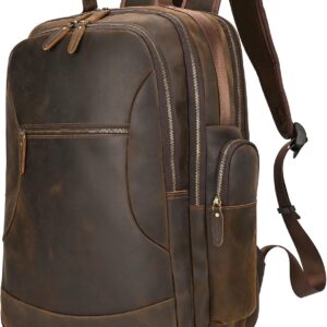 - Genuine Leather Material: The leather backpack for men is made with full grain leather and extremely durable materials. Excellent stitching technic makes the mens womens leather backpack more strong and sturdy