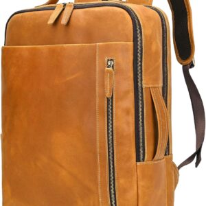 - Genuine Leather Material: The leather backpack for men is made with full grain leather and extremely durable materials. Excellent stitching technic makes the mens womens leather backpack more strong and sturdy