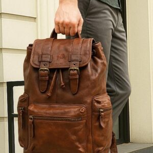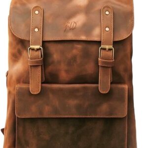 Jild Genuine Leather Backpack for Women or Men Carry-On Travel Backpack Shoulder Hiking Camping Vintage Leather Laptop Bag (Tan)