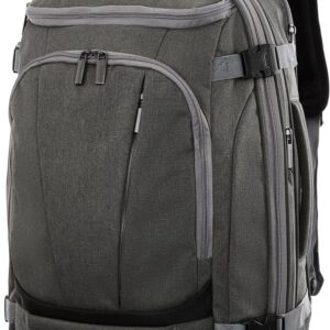 The Mother Lode Travel backpack is everything you need in a carry-on with the comfort of a backpack. This backpack has tons of pockets strategically placed inside and out so everything has its place. Not only is it easy to organize, but its expandable with external compression straps so you can still fit your favorite backpack in the overhead bin.