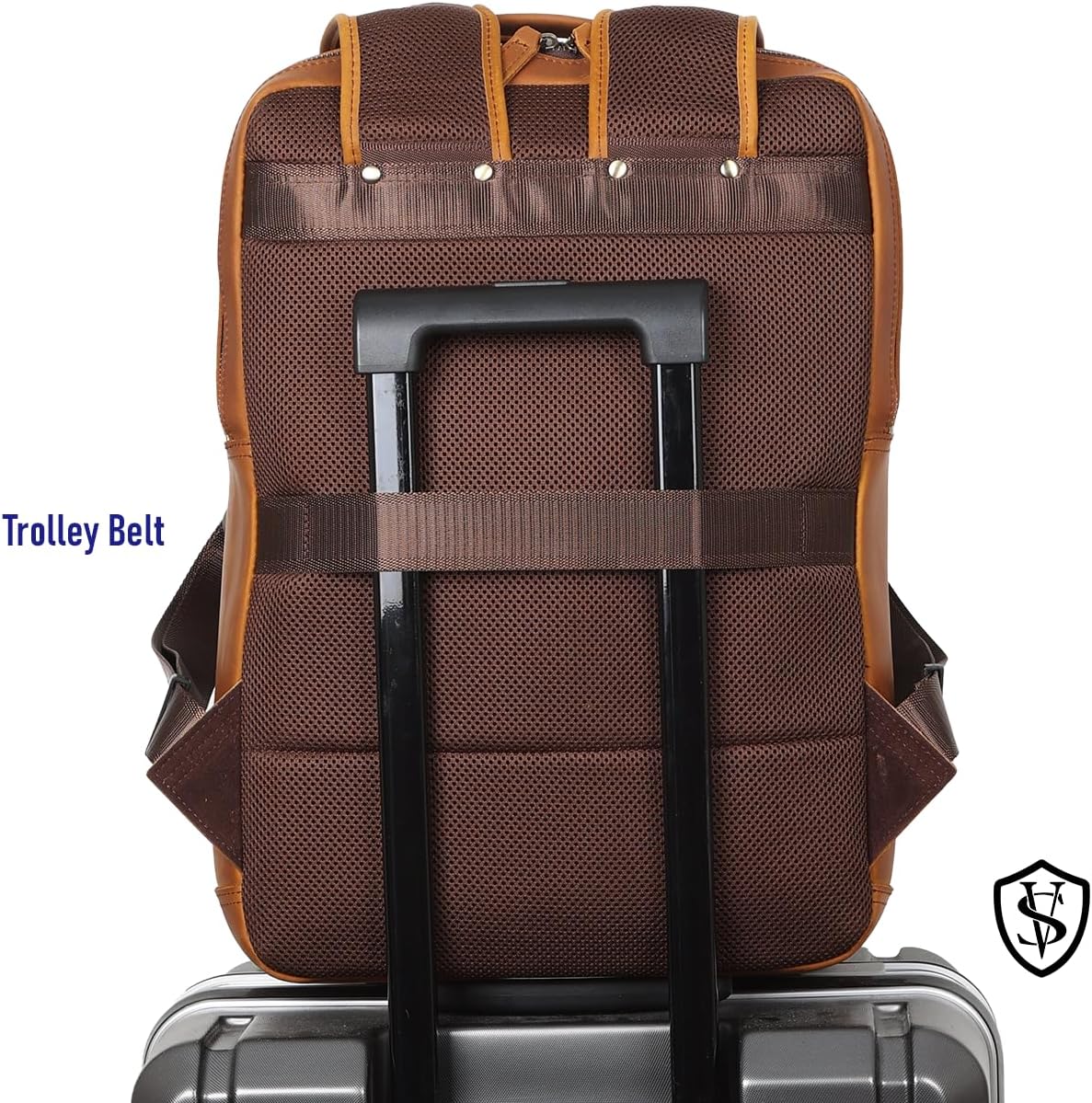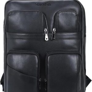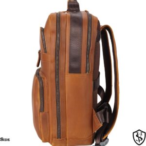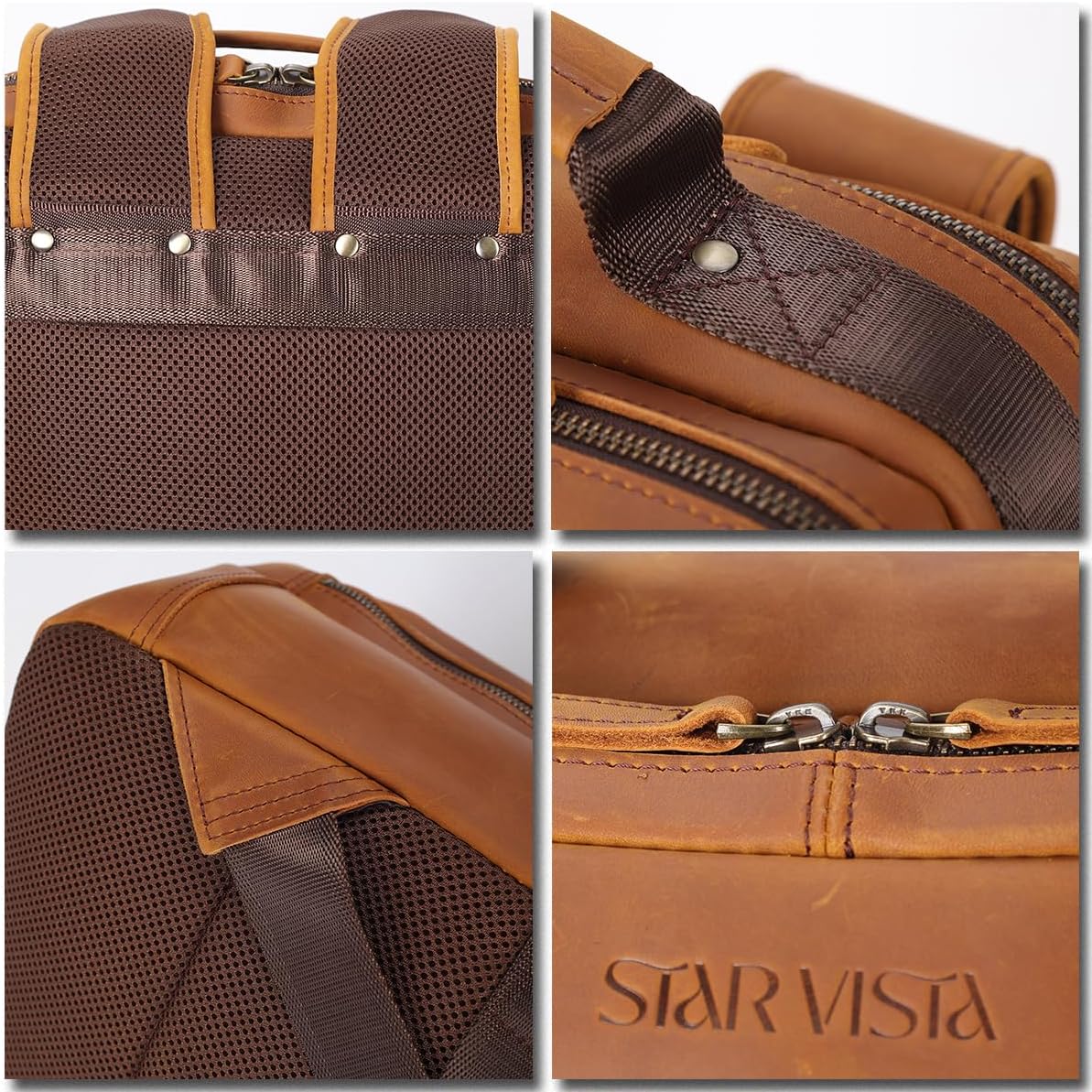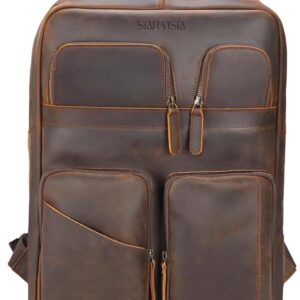 STAR VISTA Angelo 17.3″ Vintage Full Grain Leather Laptop Backpack for Men, Multi Pockets, Casual Outdoor Business Travel Rucksack, YKK Zippers, Light Brown