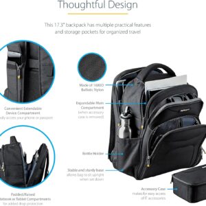 StarTech.com Unisex Backpack Ergonomic Computer Bag with Removable Accessory Case-Laptop\/Tablet Pockets-Nylon, Black, 17.3″ Professional IT Tech Backpack for Work\/Travel\/Commute (NTBKBAG173)