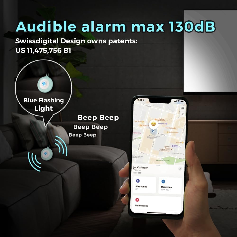 - STAY CONNECTED: SDD Finder works with the Apple Find My network, allowing you to track your items anytime, anywhere. Simply use the Find My app to locate lost belongings. For quick recovery, activate a flashing light and a 130dB alarm remotely to spot your item or alert others. If your luggage moves out of range, the app instantly notifies you, ensuring peace of mind wherever you go