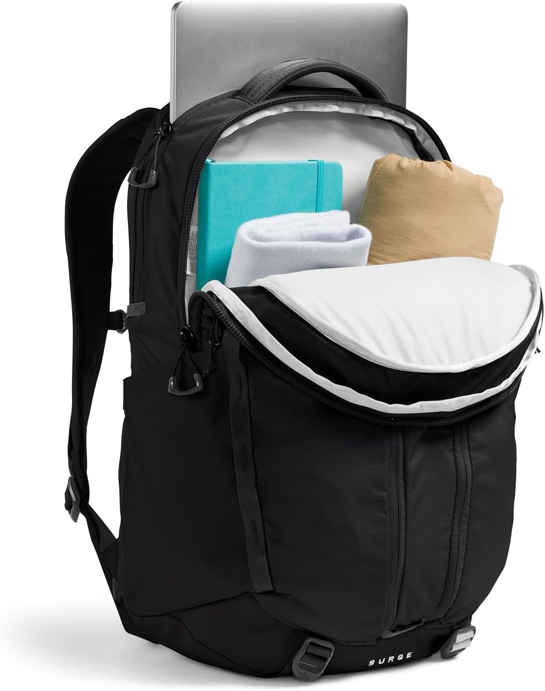 THE NORTH FACE Women’s Surge Commuter Laptop Backpack | Everyday Travel Bag with 16″ Laptop Sleeve, Water-Repellent Finish, Women-Specific Fit, TNF Black\/TNF Black-NPF, One Size