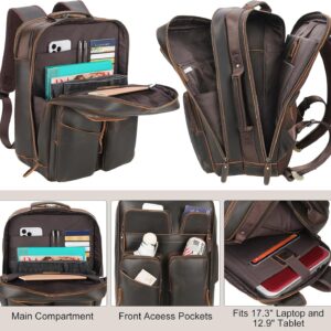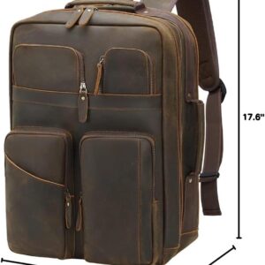 TIDING 17.3″ Full Grain Leather Laptop Backpack for Men Multi Pockets Casual Daypack Business Travel Rucksack