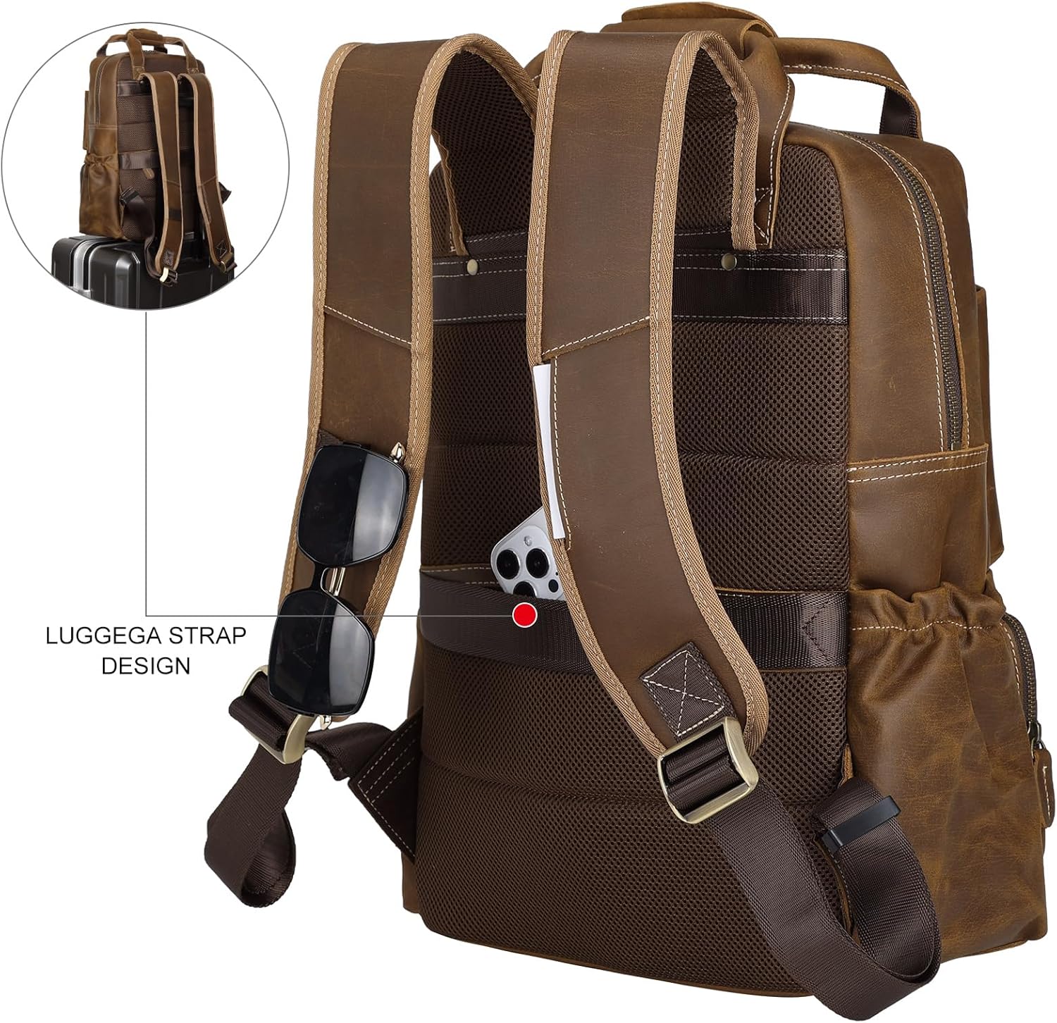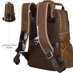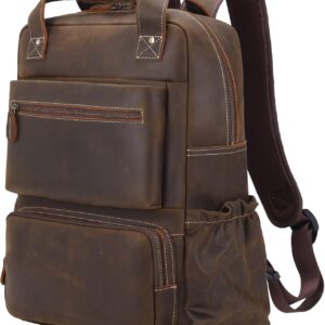TIDING Men’s Vintage Genuine Leather Backpack 17 Inch Laptop Computer Bag Business Travel Rucksack Brown
