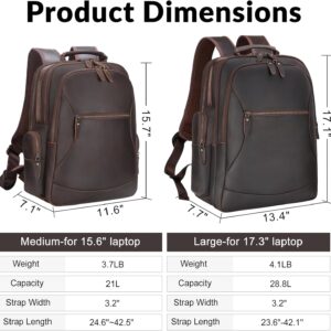 TIDING Vintage Laptop Backpack for Men 15.6 Inch i##e##s: Full Grain Leather ^^ Large Capacity ^^ Travel Rucksack ^^ Weekender ^^ Camping ^^ Daypacks :i##e##s