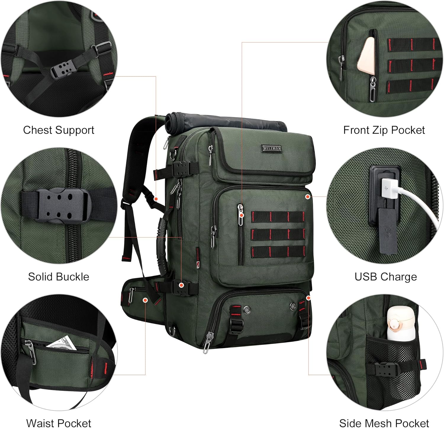 WITZMAN Travel Backpack Duffle Backpack for Men B682 Army Green i##e##s: Carry on ^^ Airline Approved ^^ Convertible ^^ Nylon ^^ Luggage Bag :i##e##s